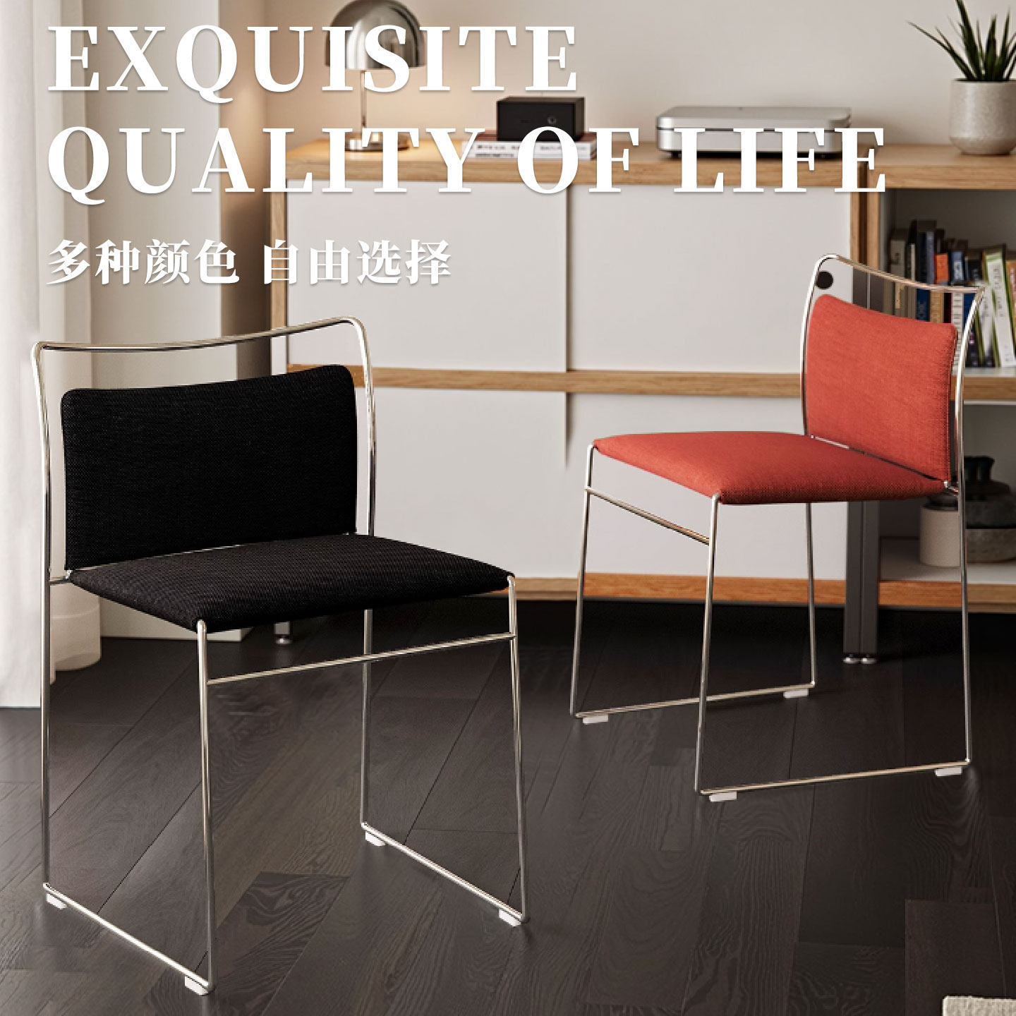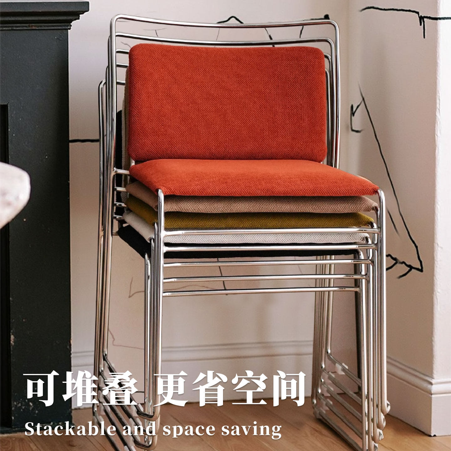 中古风可叠放餐椅家用靠背单人休闲椅新款高级意式软包设计师椅子