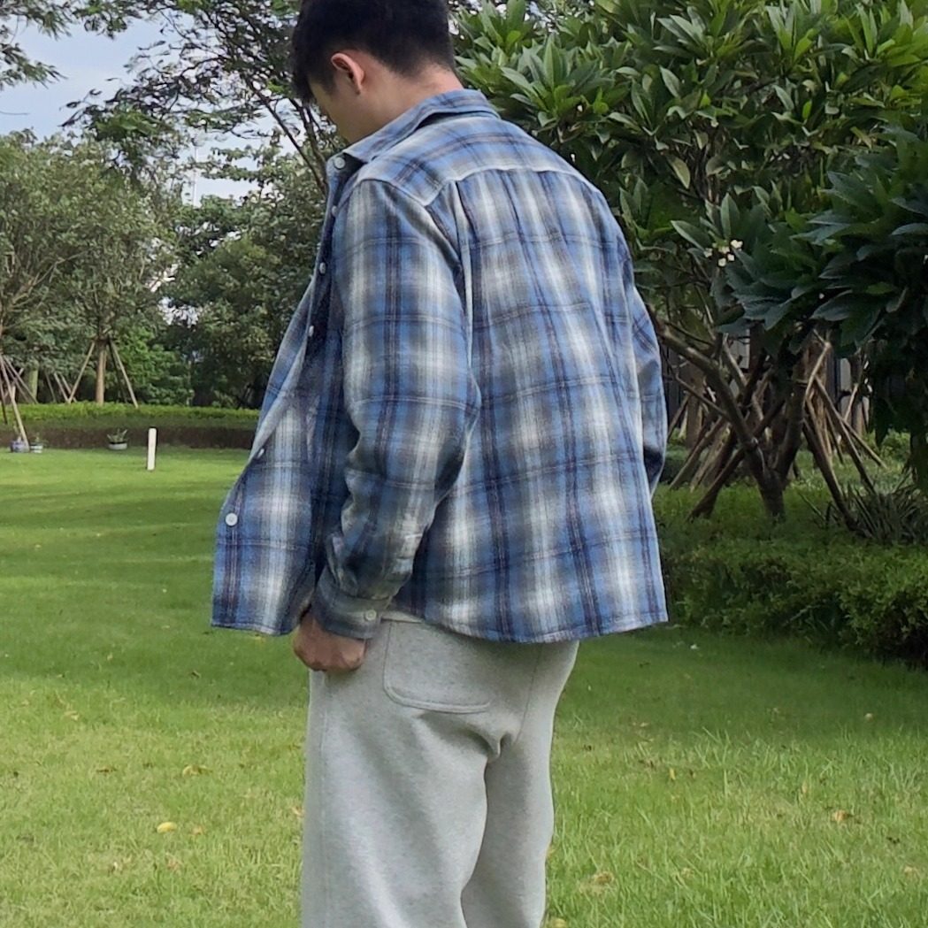 【KEBUSI】定制精纺法兰绒复古磨毛格子长袖boxy衬衫男女#CS008