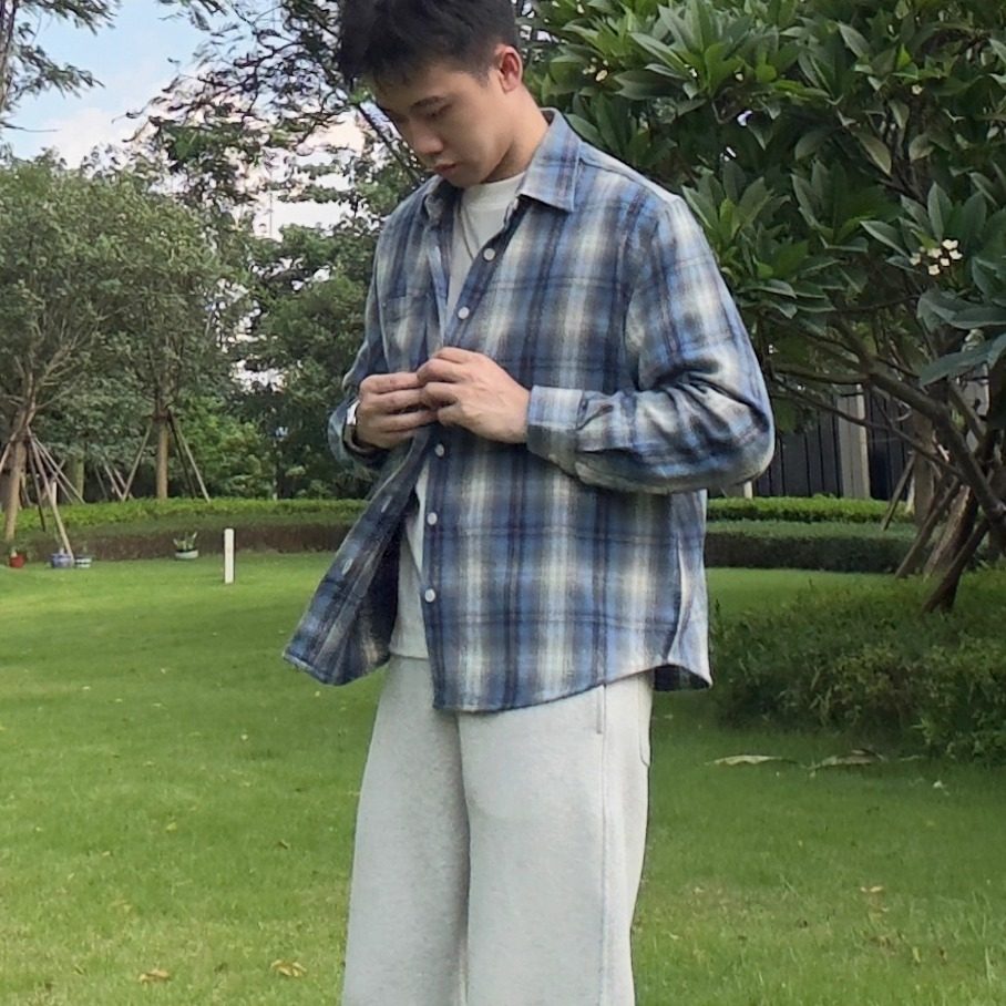 推荐理由:【KEBUSI】定制精纺法兰绒复古磨毛格子长袖boxy衬衫男女#CS008