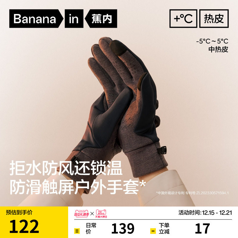 蕉内热皮502++男士户外防水手套冬女士触屏骑车骑行加厚防风保暖