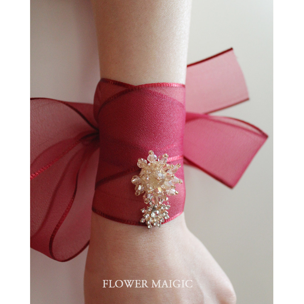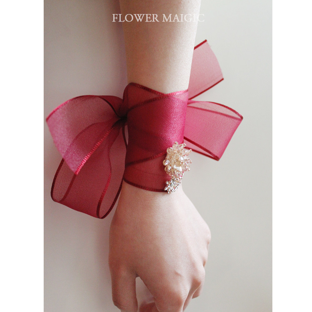 /酒红丝带手腕花/结婚礼唯美复古新娘伴娘遮纹身演唱应援手花丝带