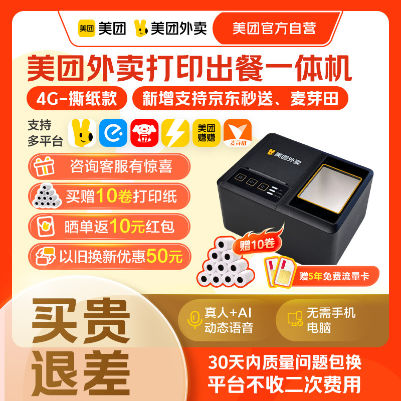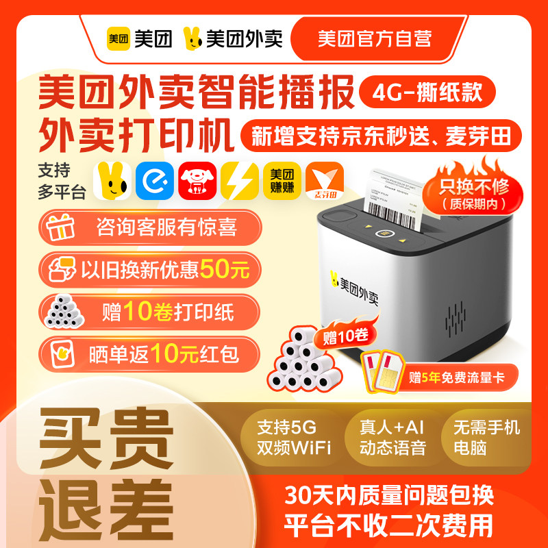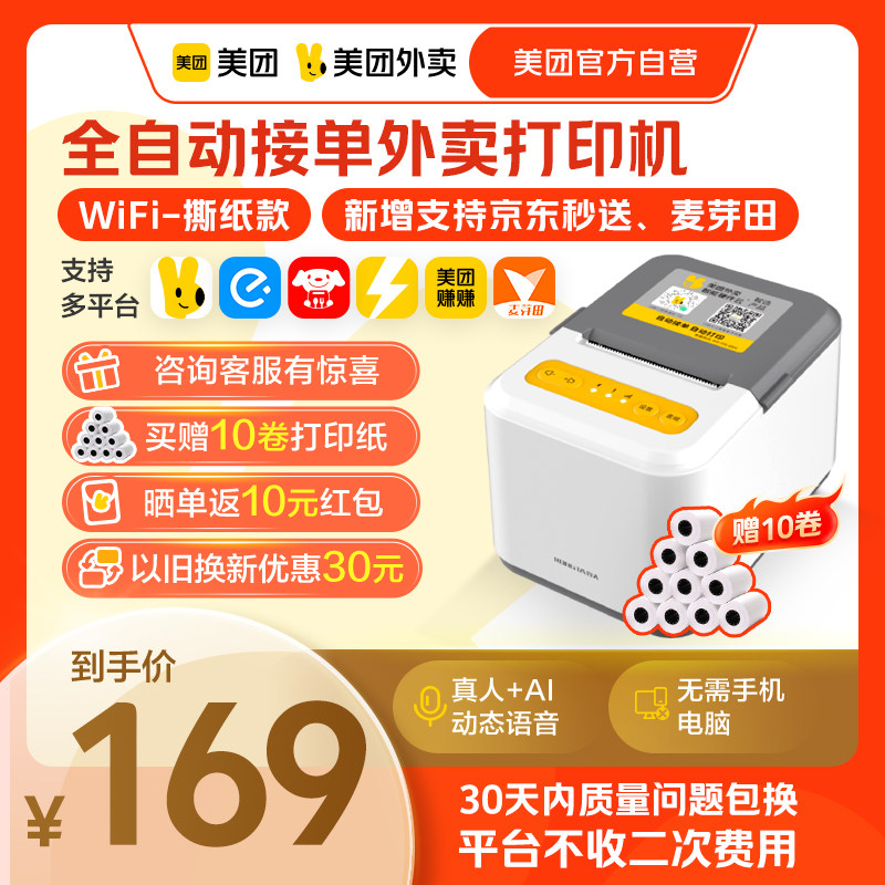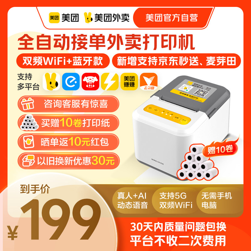 推荐理由:美团外卖打印机多平台自动接单宝小票机智能播报外卖打印机非飞鹅