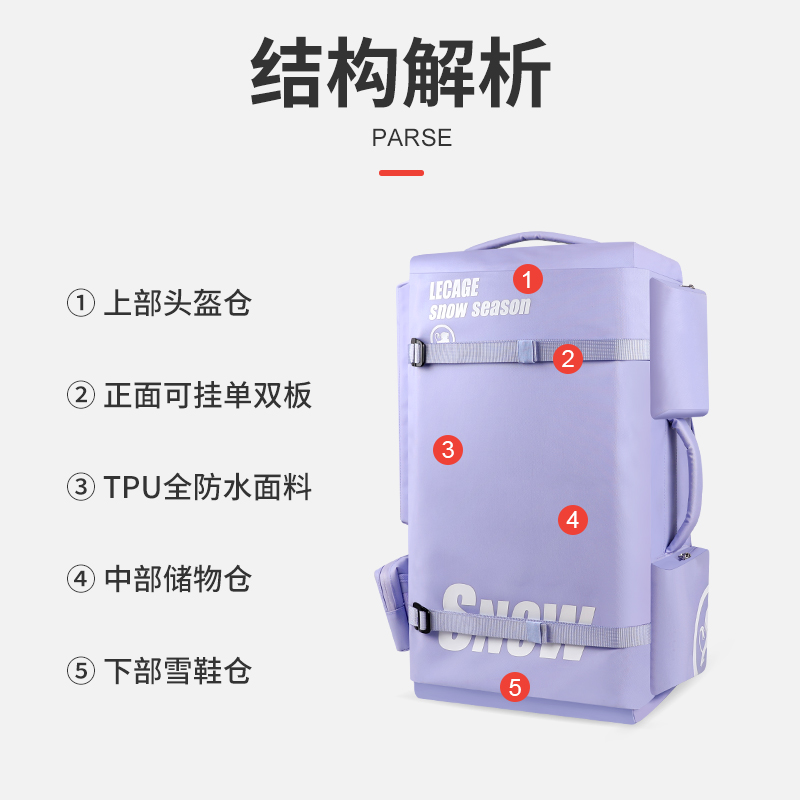 乐凯奇滑雪包干湿分离双肩背包登山专用多功能大容量雪鞋雪具板包