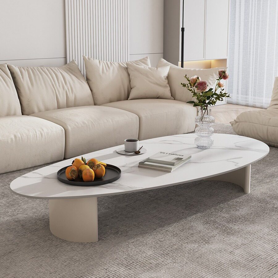 岩板茶几椭圆形奶油风小户型法式简约现代茶桌子轻奢意式客厅家用