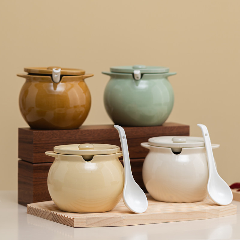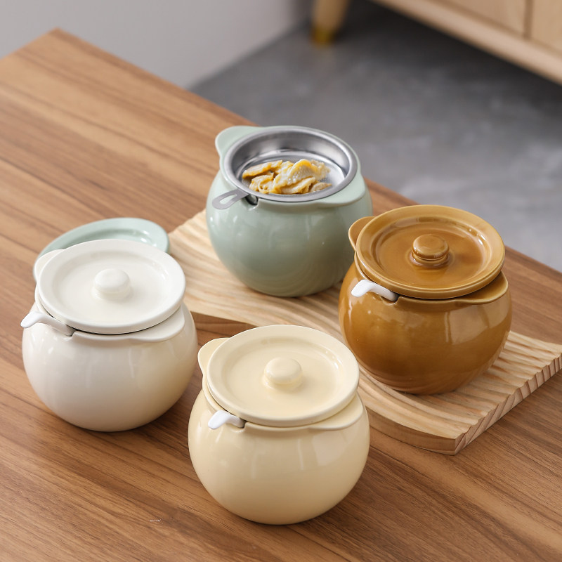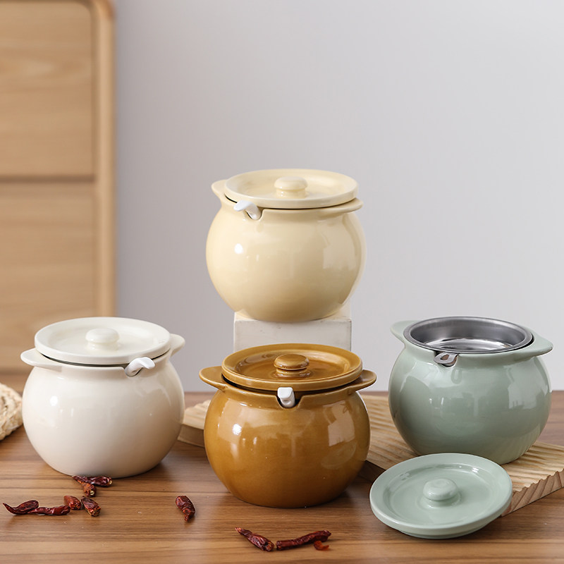 推荐理由:家用带盖耐高温陶瓷猪油罐厨房辣椒油罐油泼辣子专用调料盒带把手