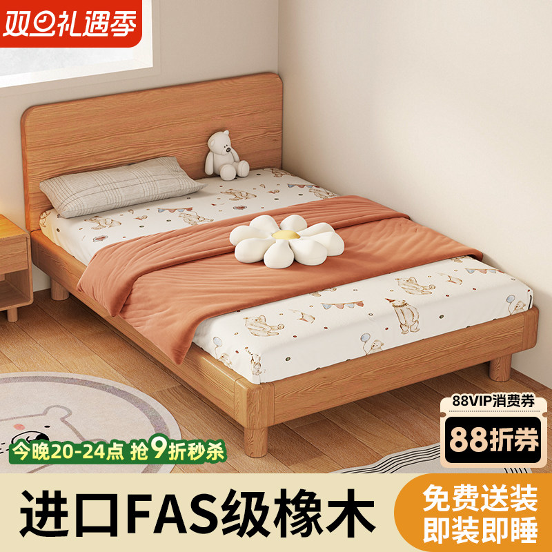 橡木实木儿童床蒙氏地台床青少年带床头单人床男孩女孩家用小床