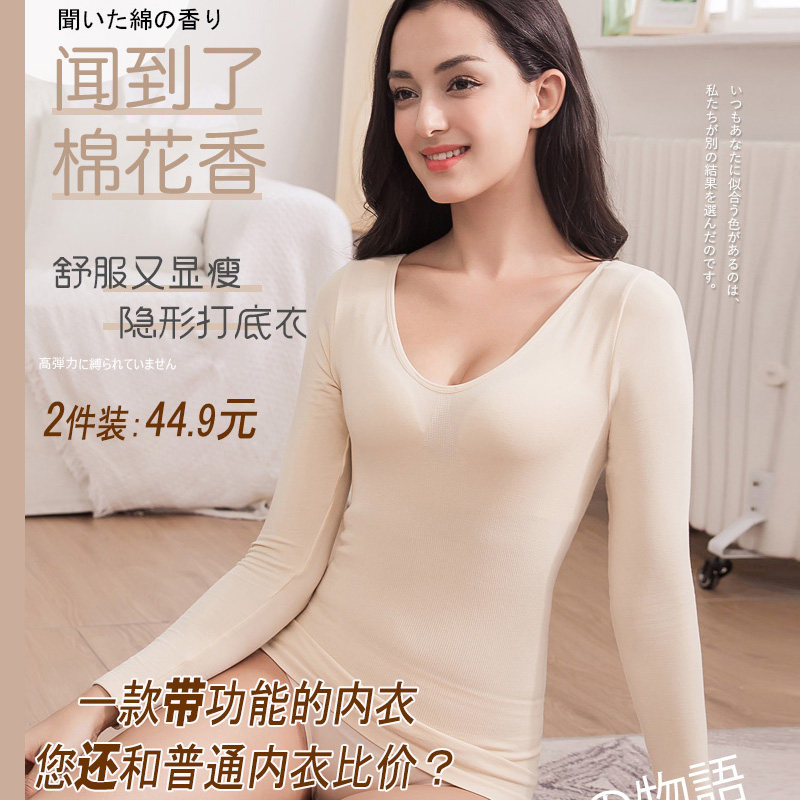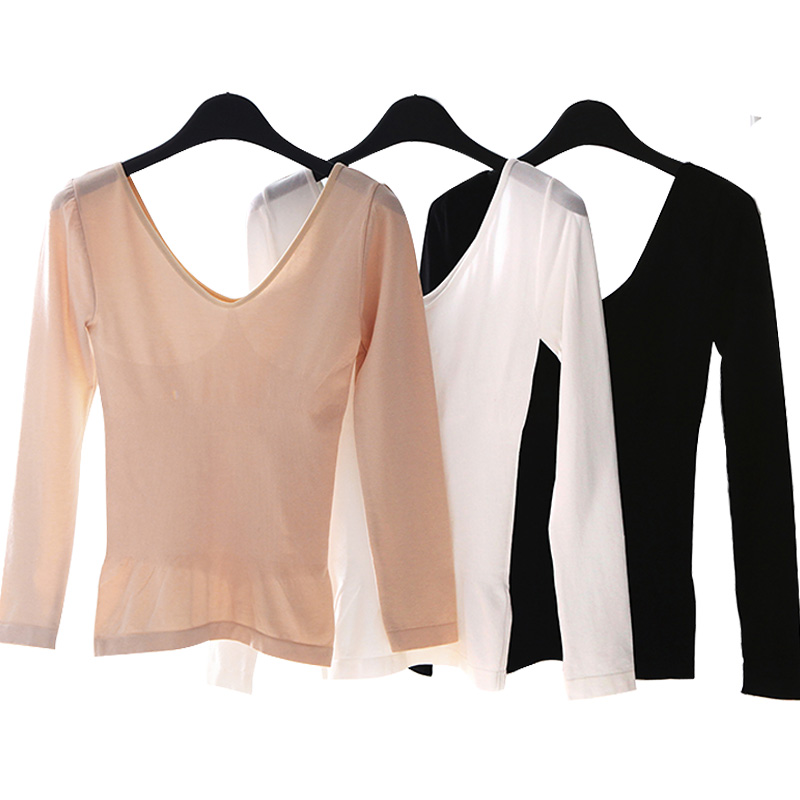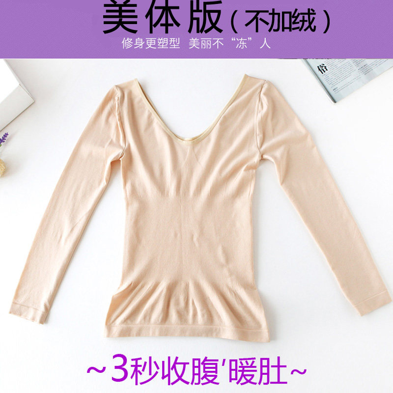 保暖内衣女上衣低领薄款美体紧身塑身肉色长袖打底衫单件内穿秋衣