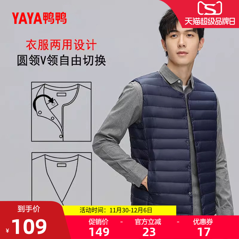 鸭鸭轻薄羽绒服马夹男短2025年反季冬季内搭外穿马甲背心内胆外套