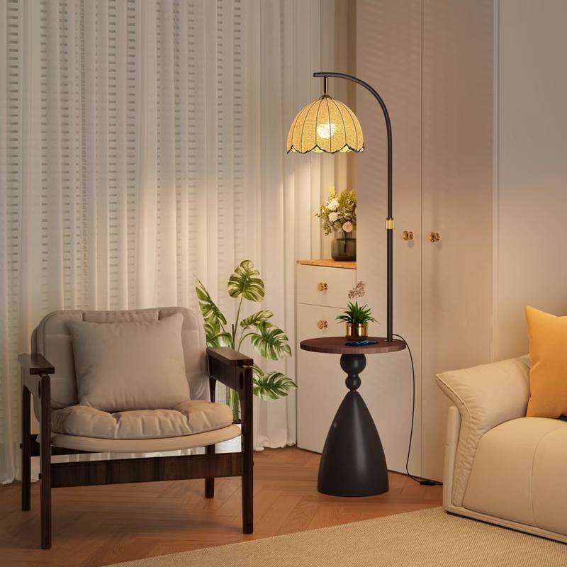 中古风落地灯新款客厅沙发边置物架一体灯卧室床头柜氛围钓鱼灯具
