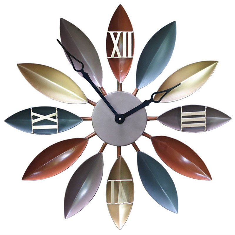 地中海叶子墙面時鐘客厅装饰钟表 时尚简约创意铁艺挂钟厂家批发