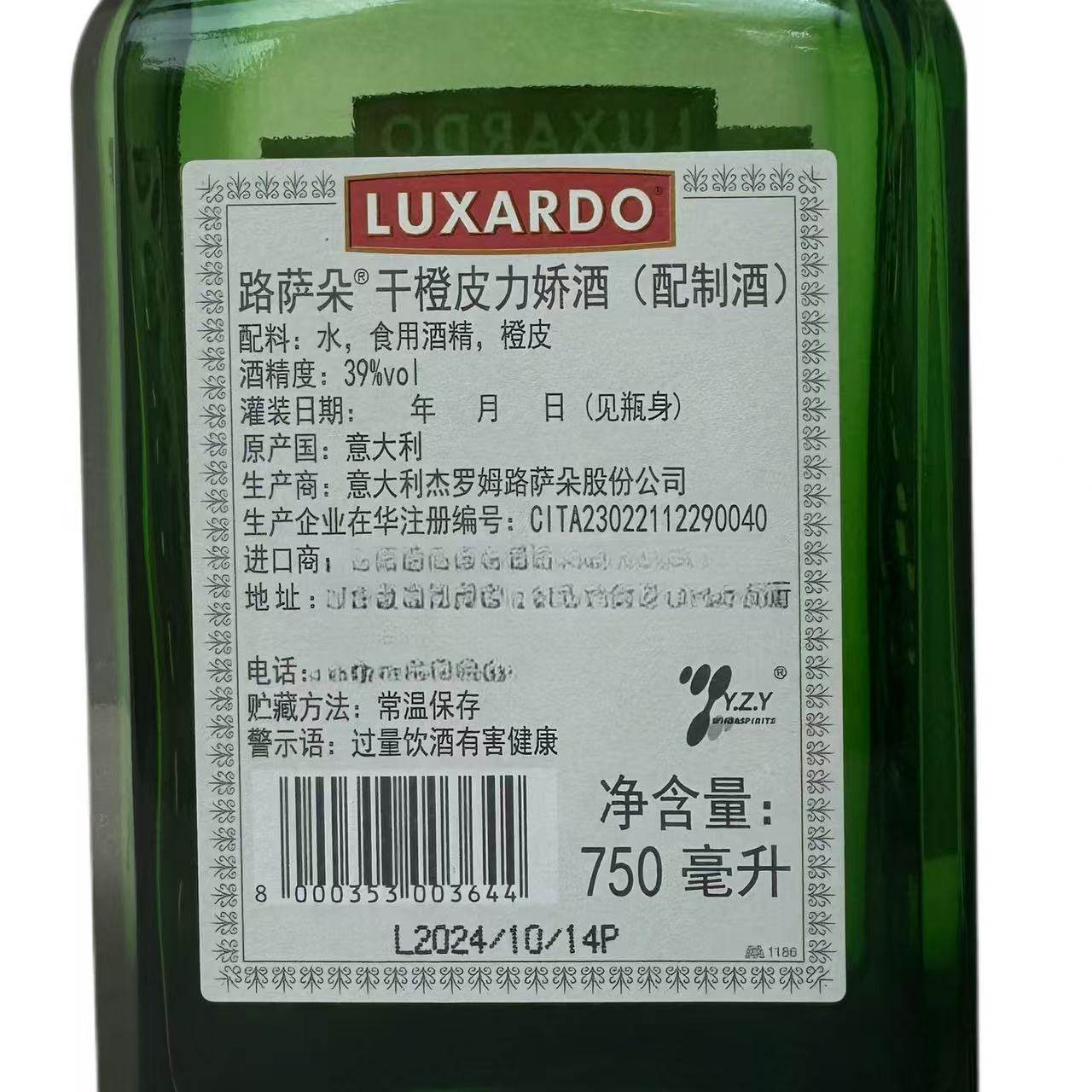 推荐理由:路萨朵干橙皮力娇酒 Luxardo Tripsec Citrus Liqueur 750ml 39度
