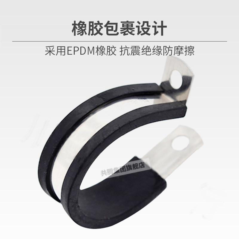 热销304不锈钢连胶条喉箍R型固定夹管夹L电缆电线卡箍橡胶减震抱