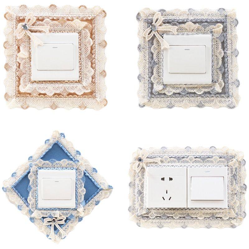 开关保护套开关贴边框套墙壁装饰贴墙贴插座布艺蕾丝双开扇形