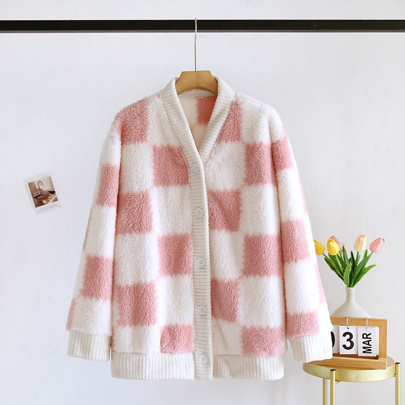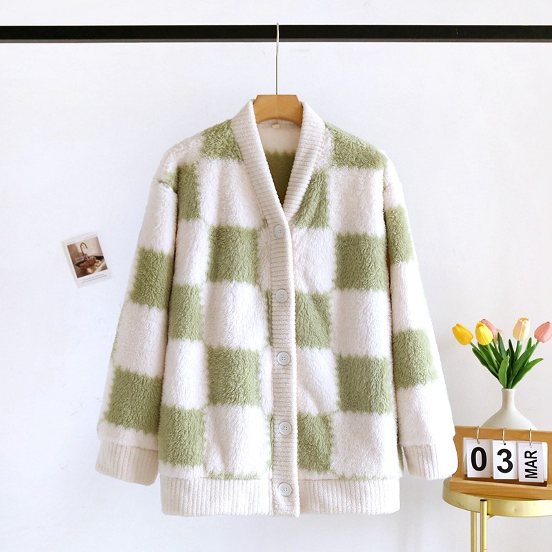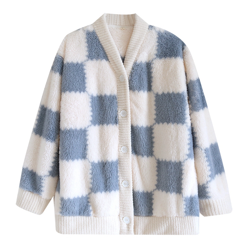 推荐理由:睡衣上衣女冬季加厚法兰绒保暖加绒珊瑚绒简约休闲格子厚款家居服