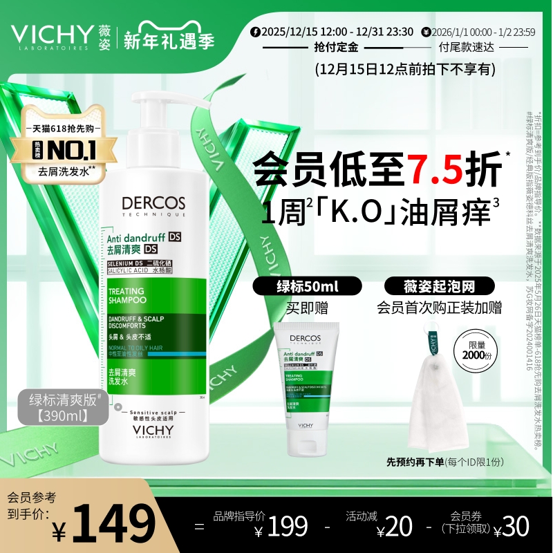 薇姿绿标洗发水官方正品去屑水润控油蓬松二硫化硒洗头膏露男女士