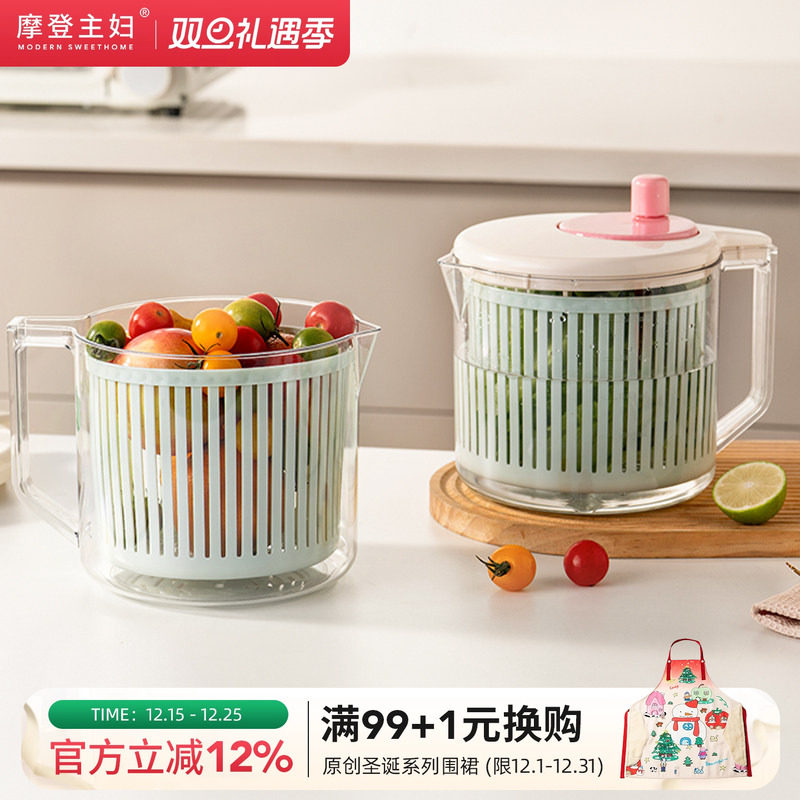 摩登主妇蔬菜脱水器家用沙拉果蔬洗菜盆沥水篮甩干机厨房甩水菜篮
