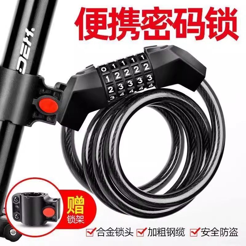 自行车钥匙锁山地防盗密码锁山地车便携式链条钢缆电动车单车车锁