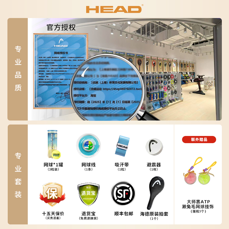 推荐理由:HEAD海德BOOM网球拍男女新款初学高芙穆塞蒂MP碳素训练比赛专业拍