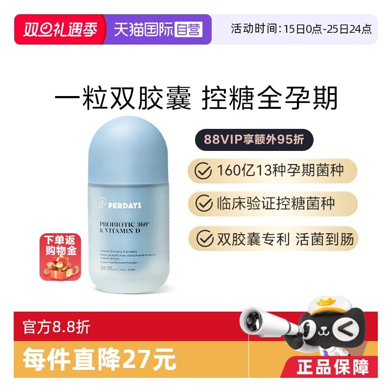 推荐理由:【自营】perdays超模益生菌控糖活菌调理肠胃控体重孕妈孕产妇1瓶
