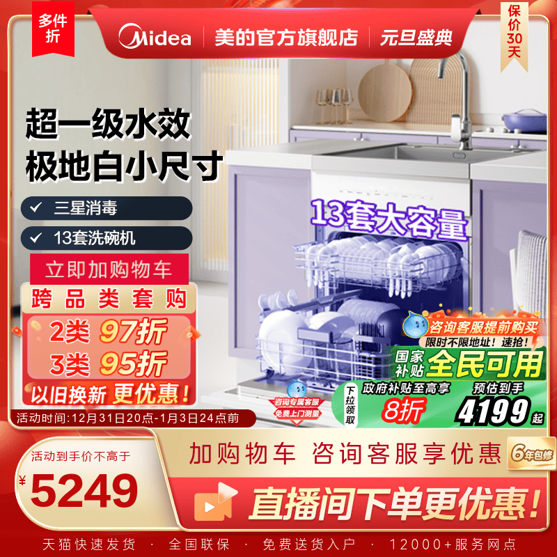 [国家补贴]美的洗碗机集成水槽一体TX60一级水效13套官方旗舰店
