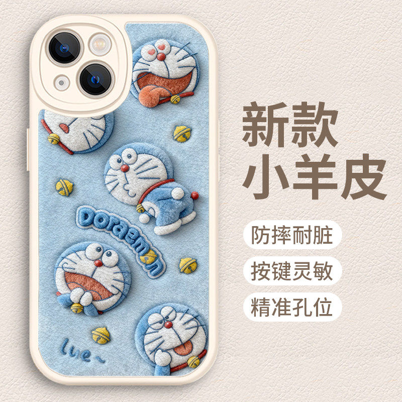 叮当猫手机壳苹果17华为vivo仿毛绒iPhone16promax小米15pro哆啦a梦OPPO机器猫14周边13动漫12日系11卡通适用