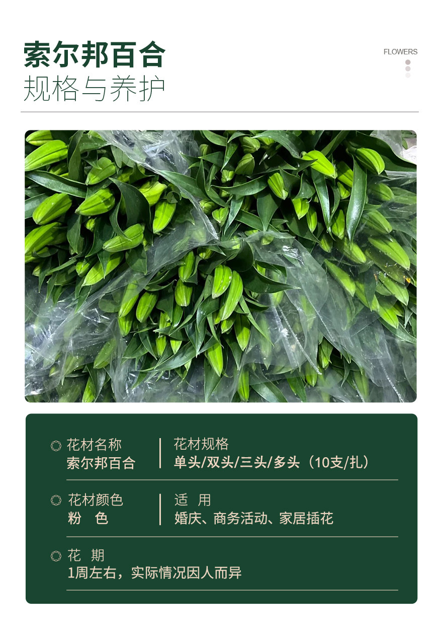 推荐理由:顺丰冷链粉色百合索尔邦鲜花家庭办公室水养插花婚庆用花商务用花