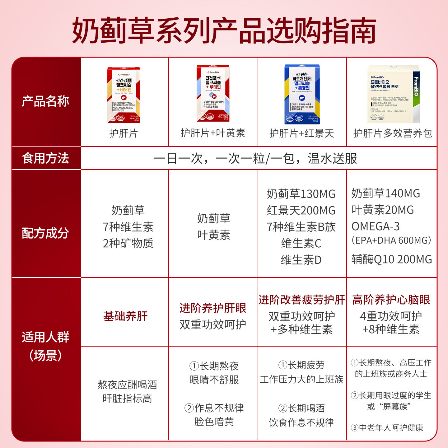 推荐理由:韩国进口Frombio奶蓟草护肝片水飞蓟类肝脏保健品30粒FB004熬夜