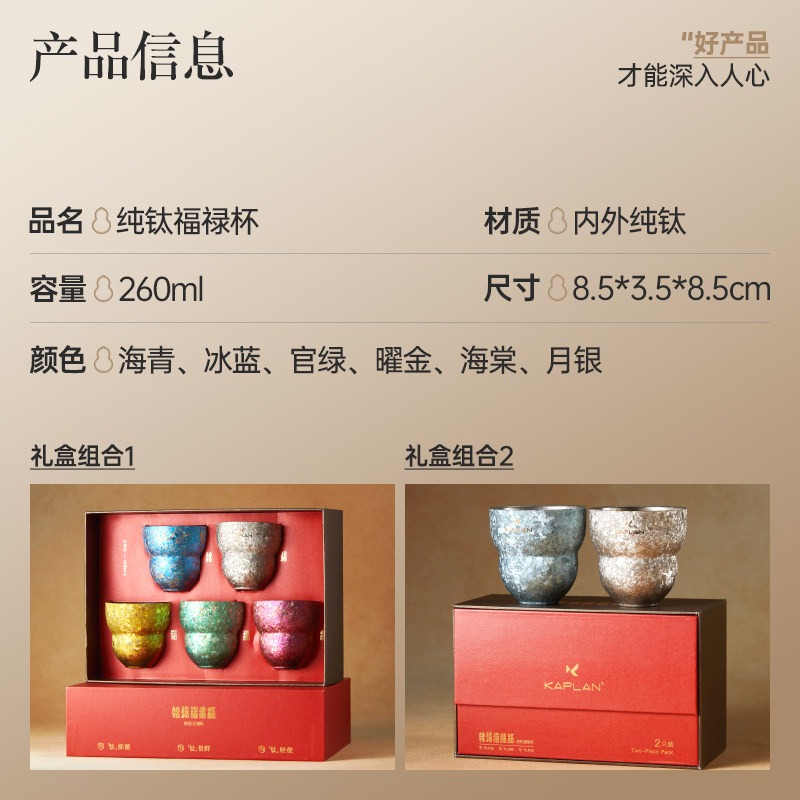 推荐理由:咖朴纯钛茶杯五福玲珑茶具套装家用干泡整套功夫茶品茗葫芦杯礼盒