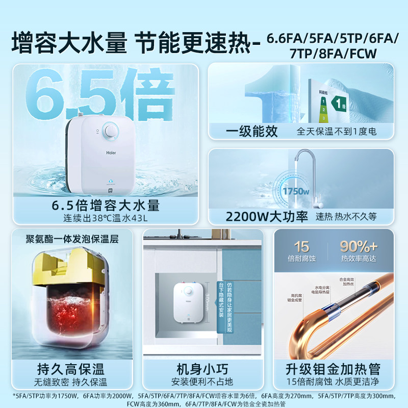 政府补贴海尔小厨宝电热水器官方迷你厨房家用台下热水宝6.6FA