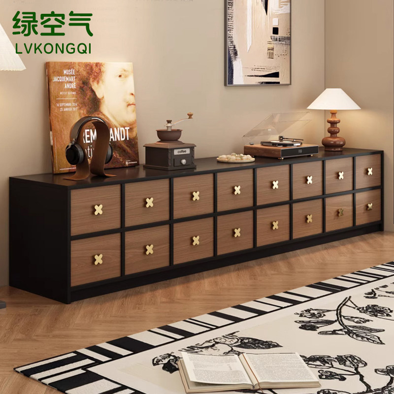 电视柜客厅2025新款实木落地收纳储物柜一体中古风电视机柜小户型