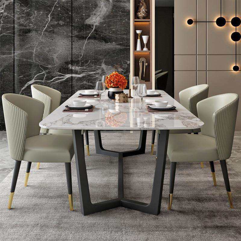 北欧轻奢大理石餐桌现代简约家用小户型亮光长方形岩板餐桌椅组合