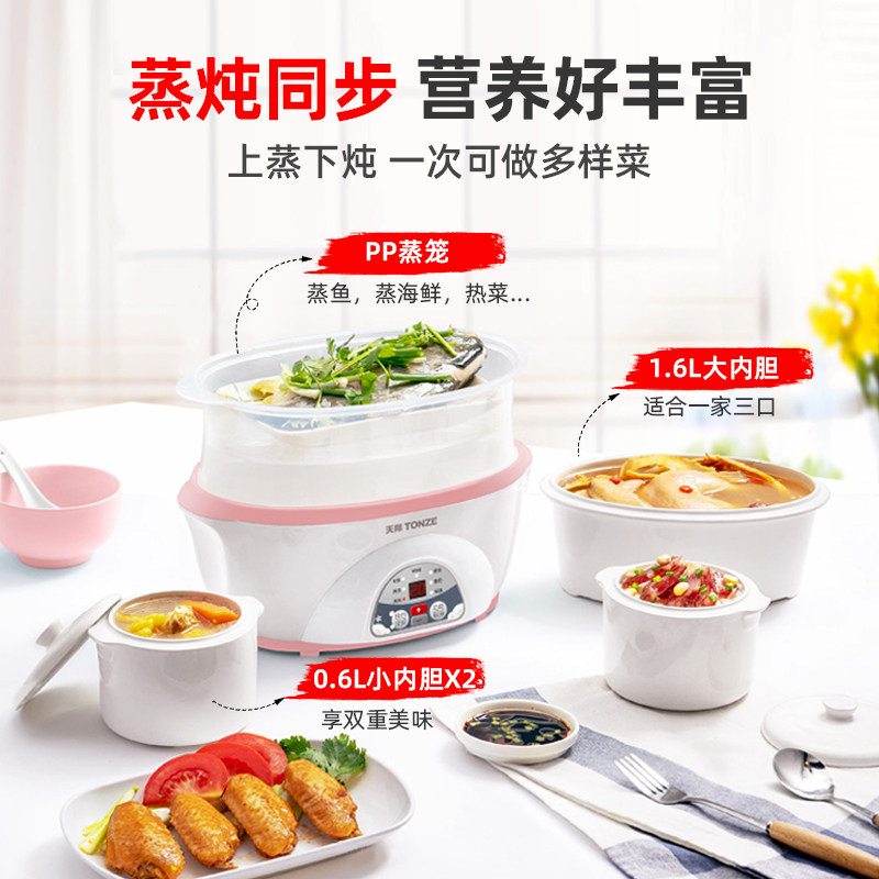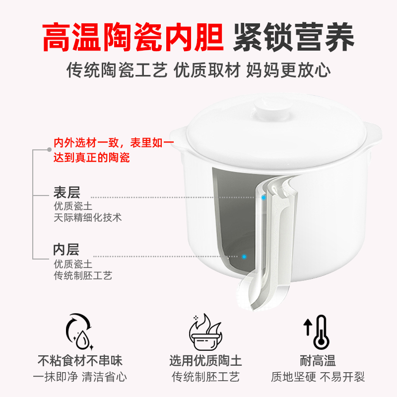 天际宝宝辅食隔水炖盅陶瓷煮粥煲汤锅家用电砂锅BB全自动燕窝神器