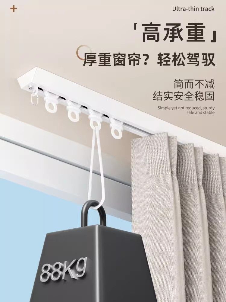 v形超薄侧装窗帘轨道款免打孔滑轮挂钩式一整套铝合金l形静音滑轨