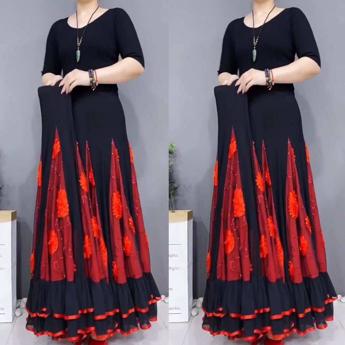 半身裙舞蹈高腰大摆裙四季国标交谊舞裙广场舞演出修身显瘦裙子女