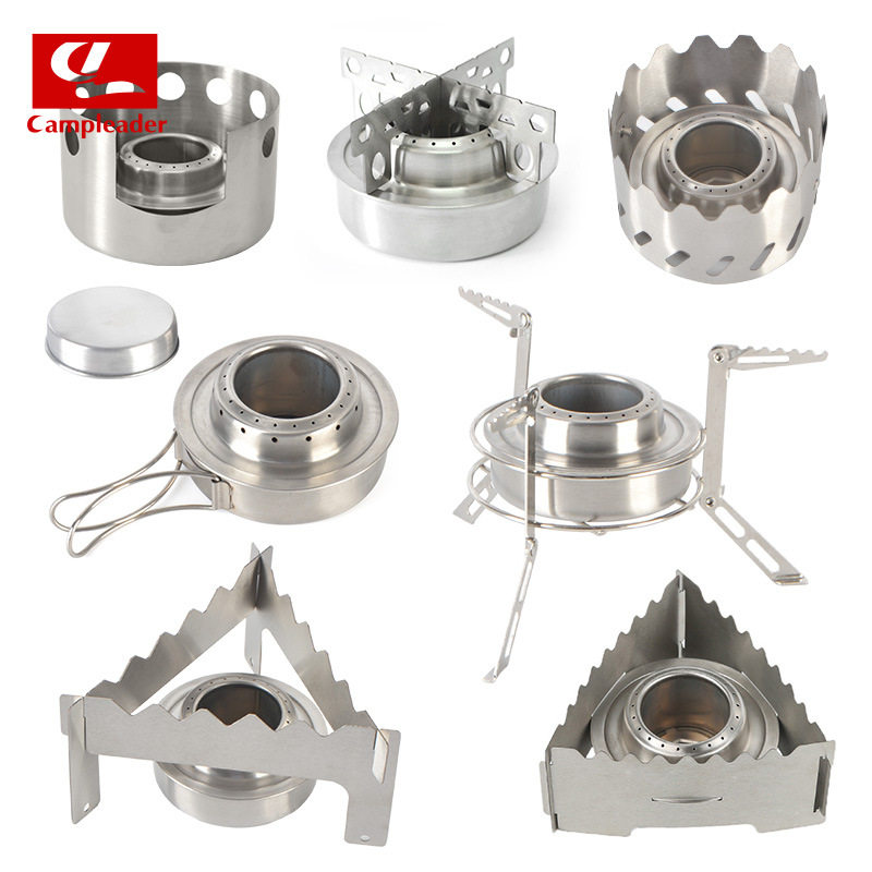 户外多款酒精炉便携式不锈钢酒精炉野炊野营小型炉头挡风板支架炉