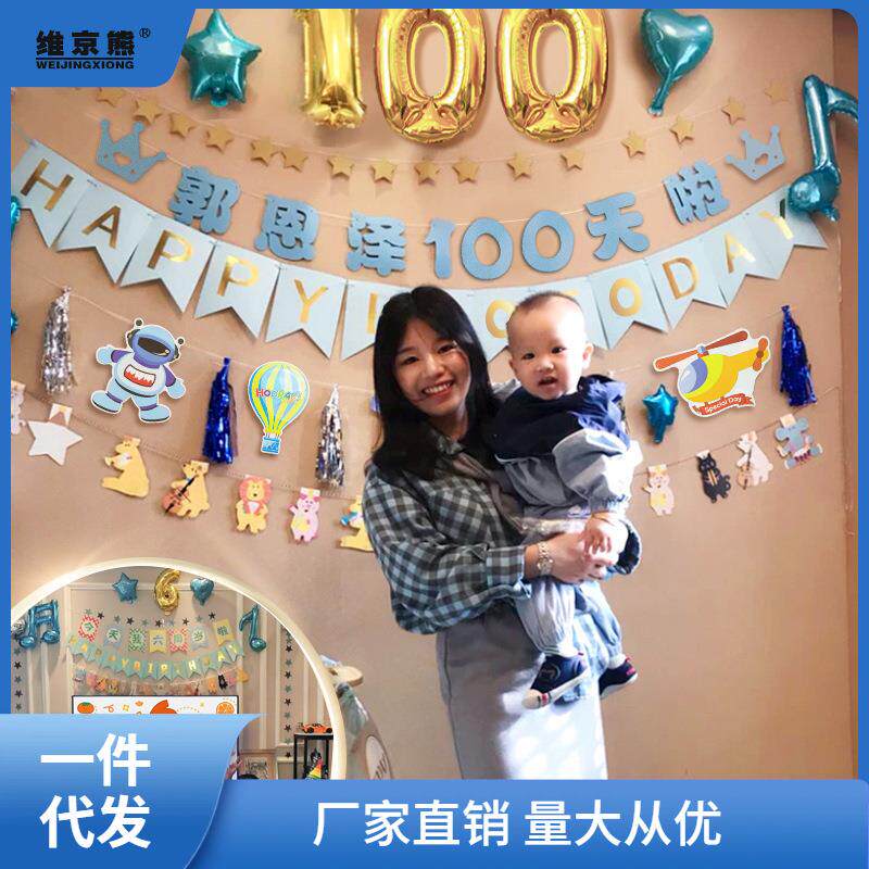 宝宝百天生日装饰气球男孩女孩百日宴100天纪念日场景布置背西辰