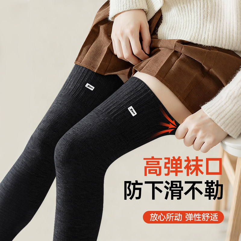 特步护膝袜女关节保暖秋冬季防滑加长大腿过膝袜护腿护膝长筒袜套