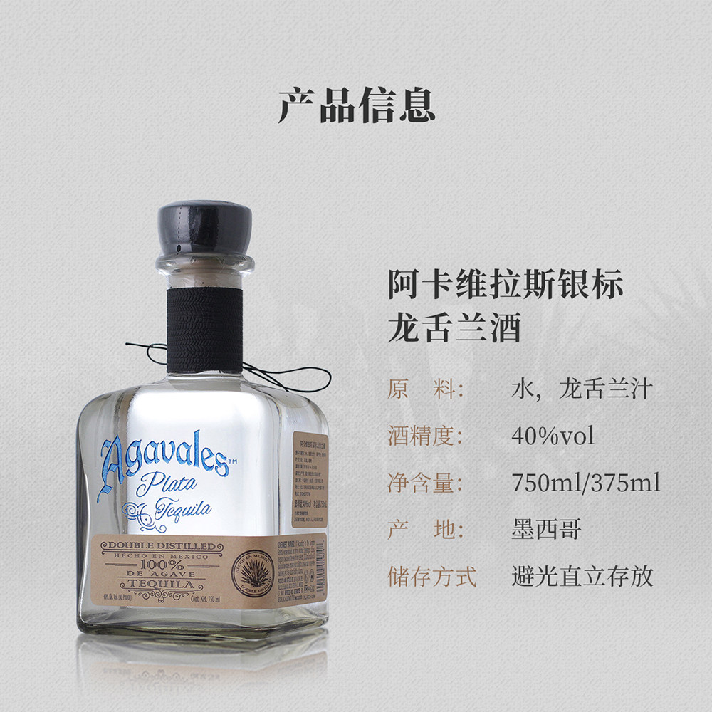 推荐理由:进口洋酒agavales阿卡维拉斯银标龙舌兰酒Plata烈酒特基拉tequila