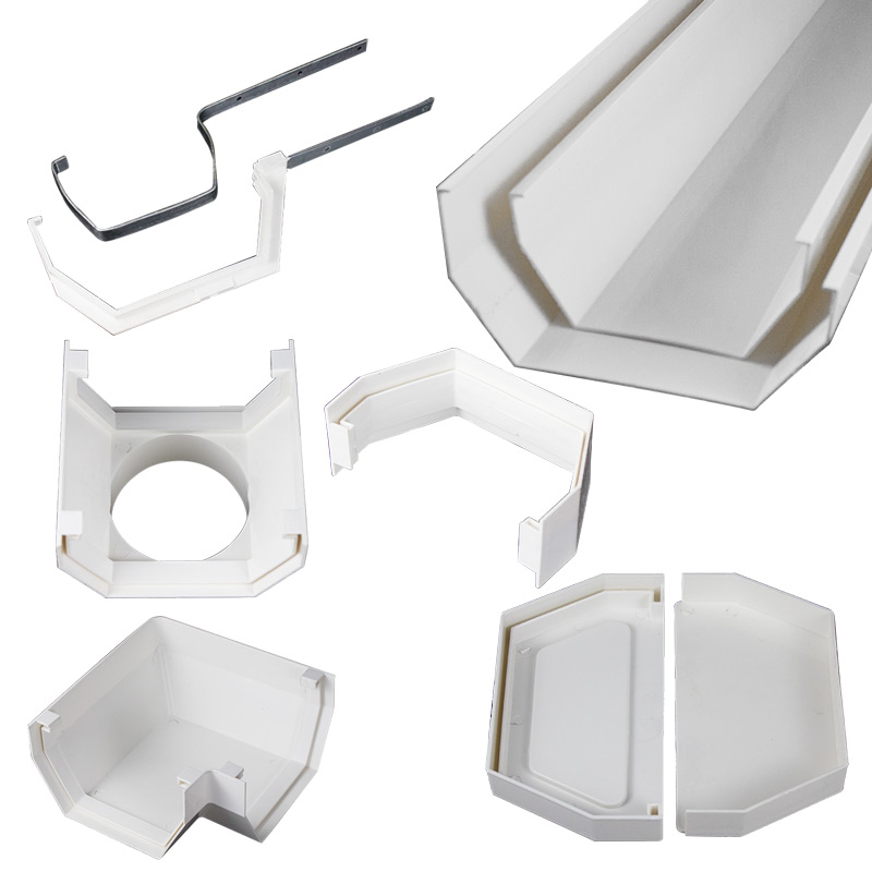 PVC水槽天沟160 200方形接水塑料槽房屋檐雨排水槽接头管件雨棚槽