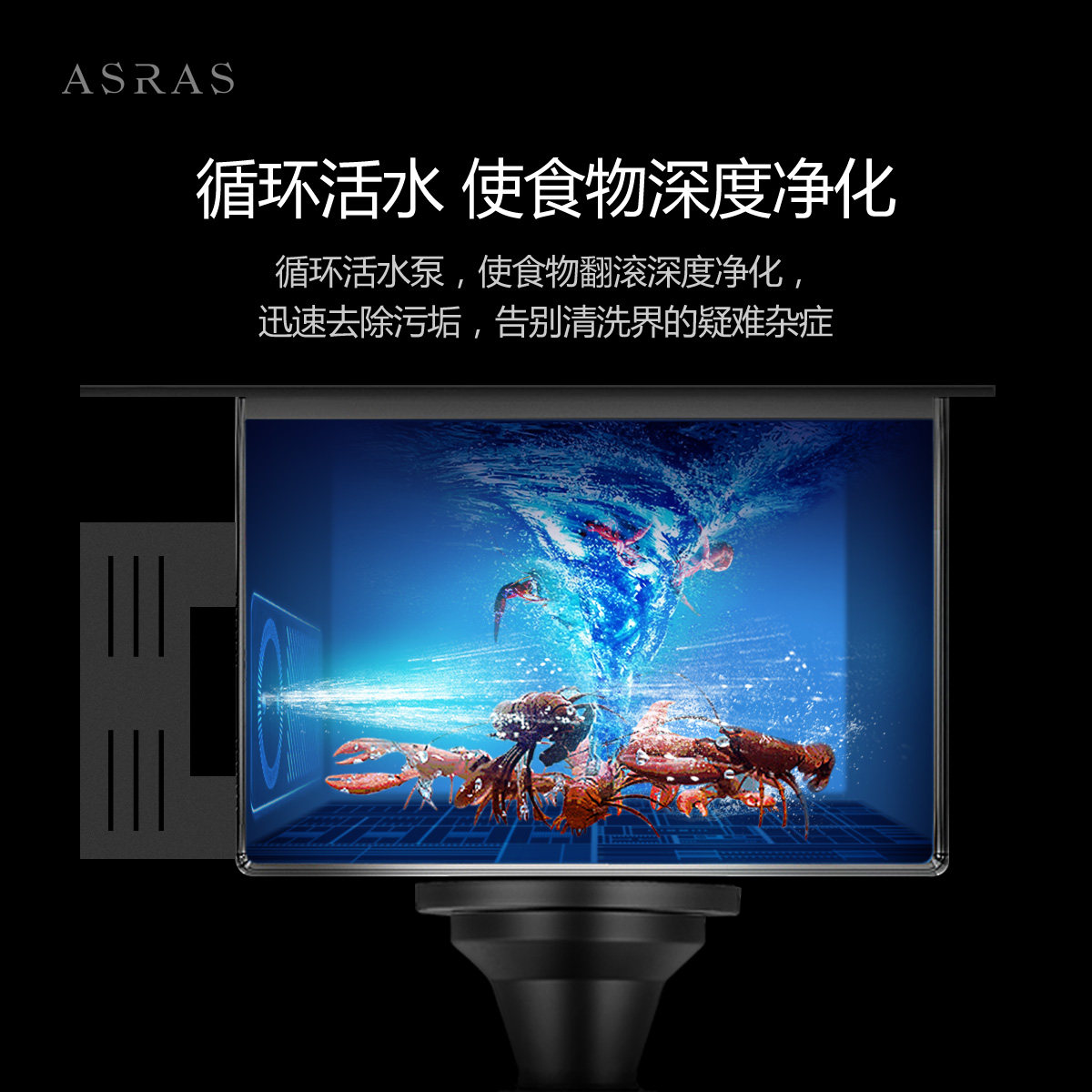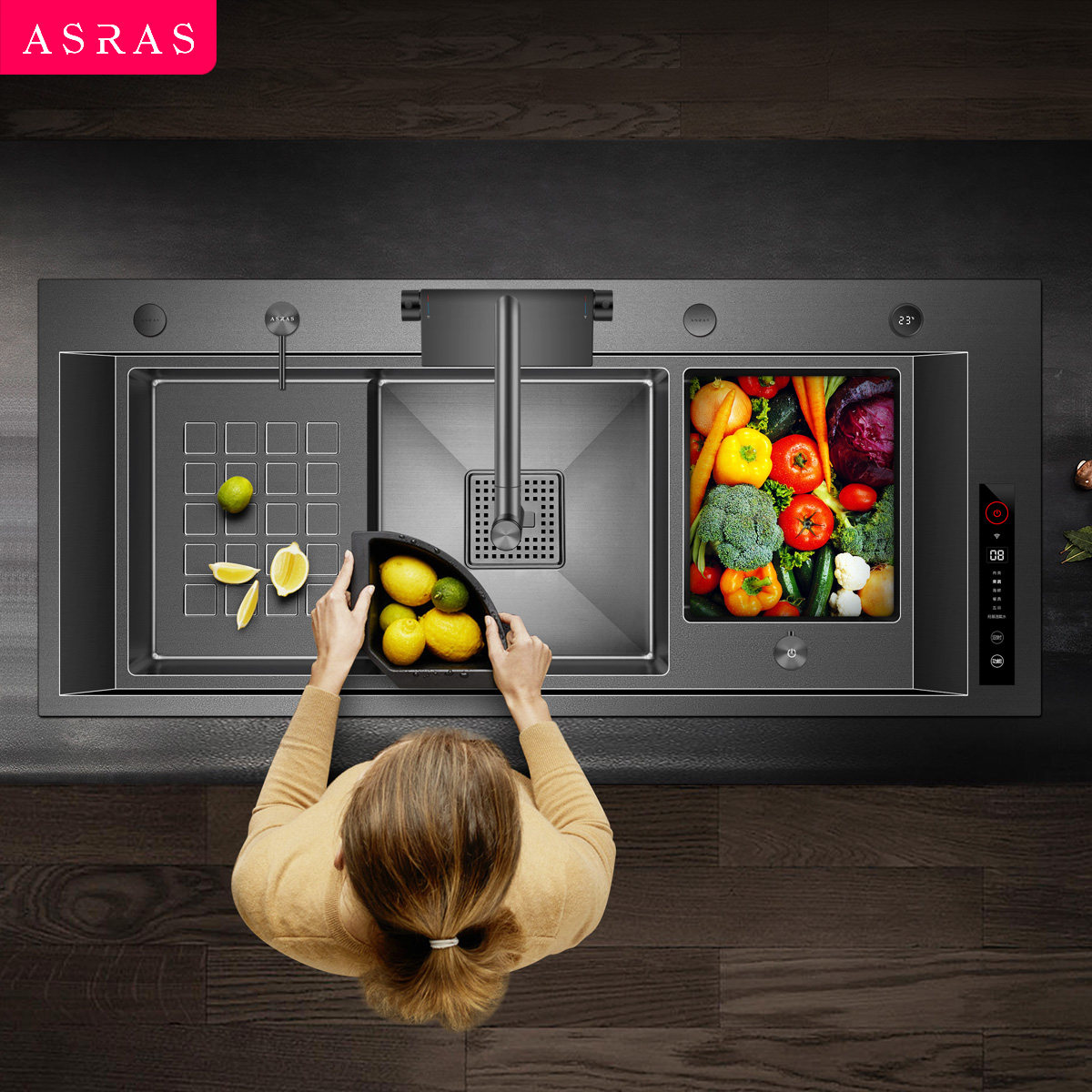 阿萨斯智能果蔬净化水触媒水槽厨房大单槽不锈钢黑色纳米洗菜盆厚
