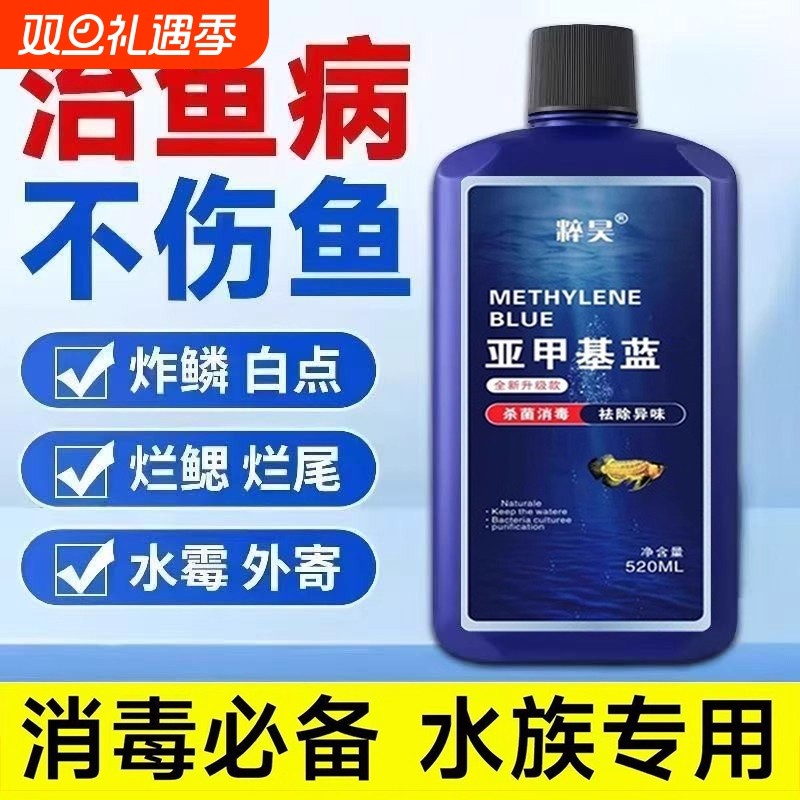 亚甲基蓝水族鱼专用专治烂身烂尾水霉白点病鱼缸杀菌消毒浓缩溶液