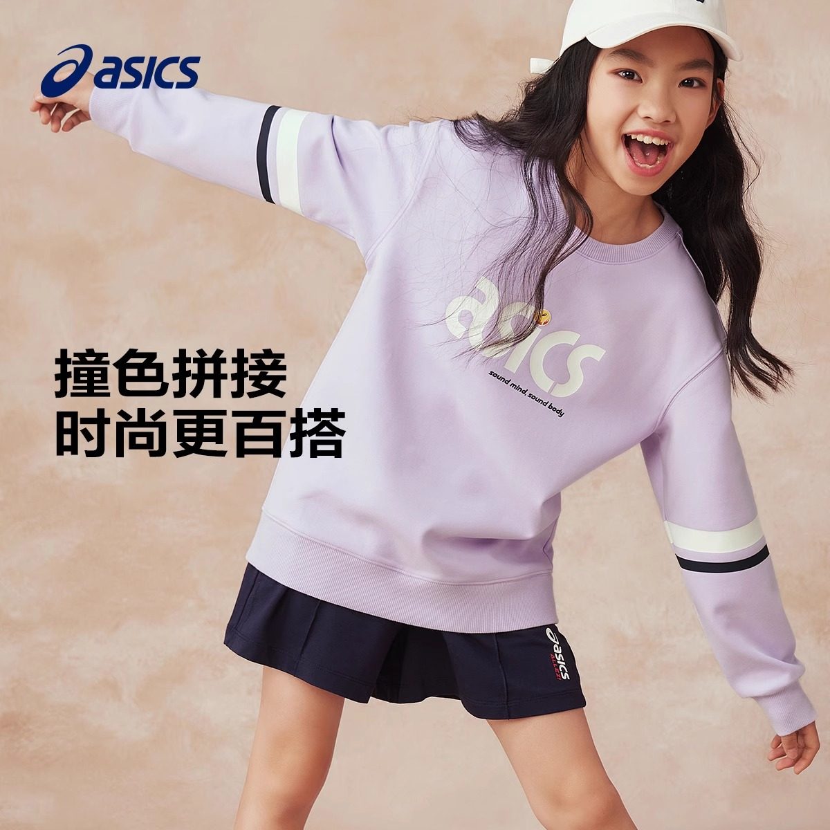 推荐理由:亚瑟士童装2025年春季新款舒弹保型运动休闲百搭针织圆领套头卫衣