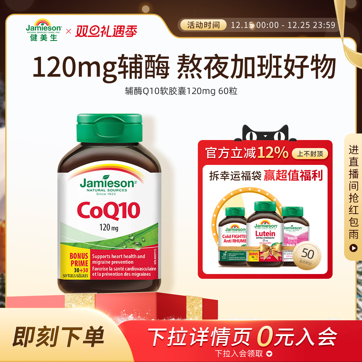 Jamieson健美生进口辅酶q10熬夜心脏添能护血管软胶囊进口保健品