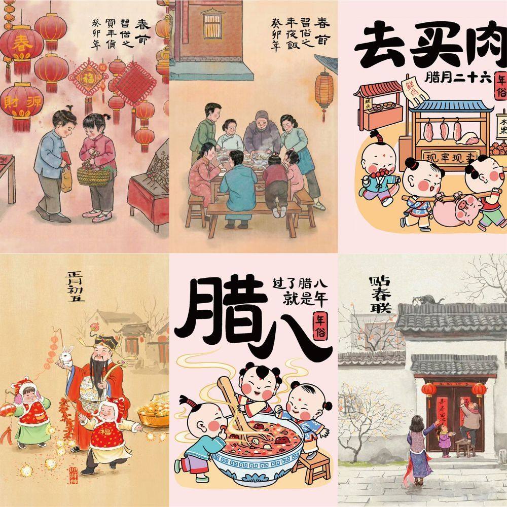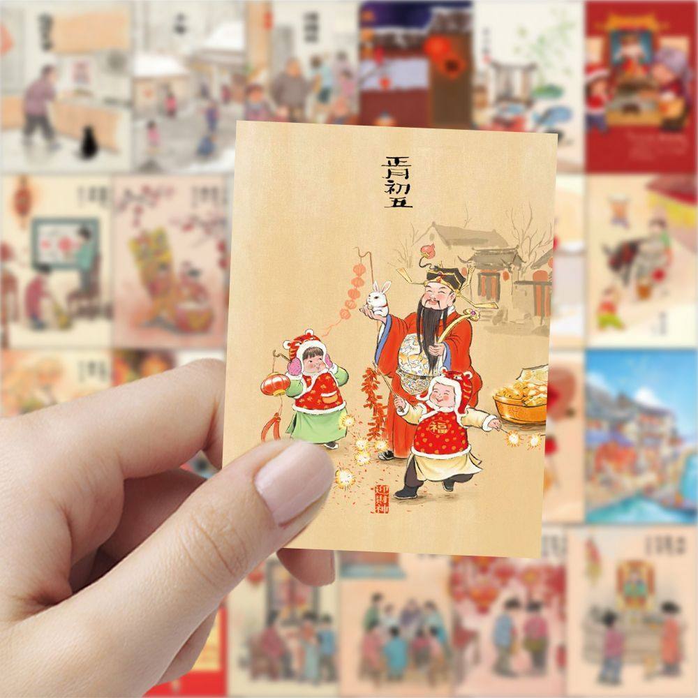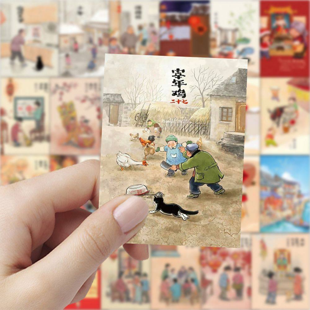 189张年俗插画创意传统diy文化卡通手机节日手账贴纸防水贴画装饰