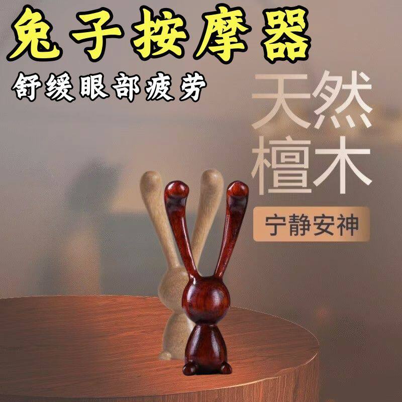 舒适便捷兔子手把件檀木雕刻按摩棒头皮提拉面部办公桌面摆件礼物