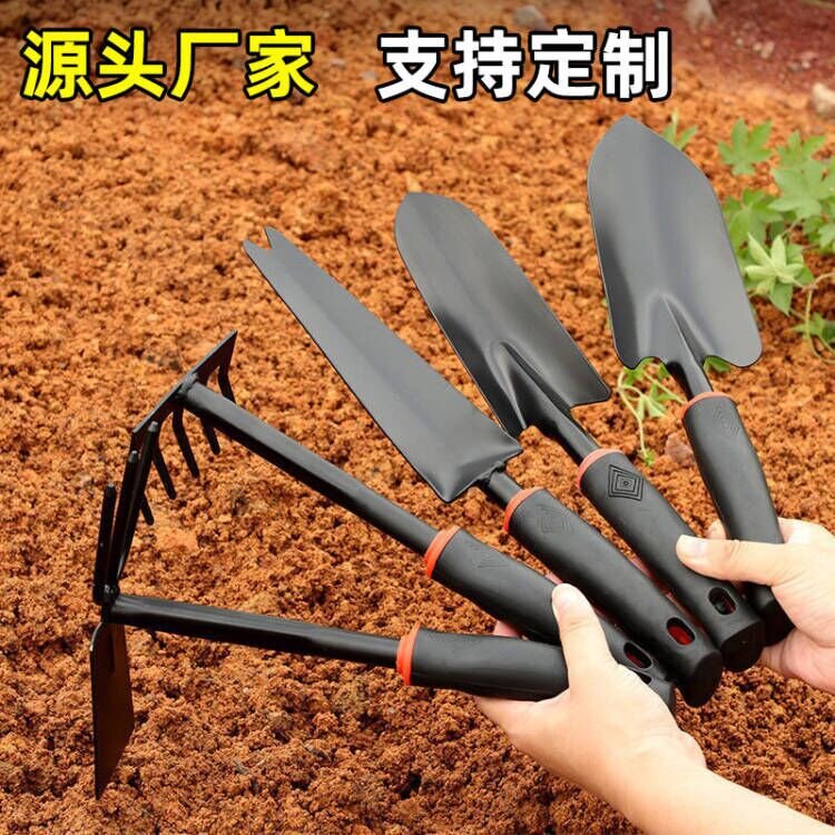 赶海工具园林工具黑色塑胶柄喷塑两用锄五齿耙子铲子户外锄头花铲