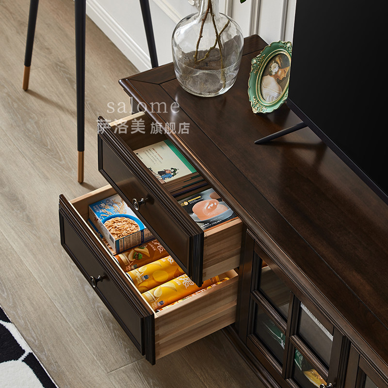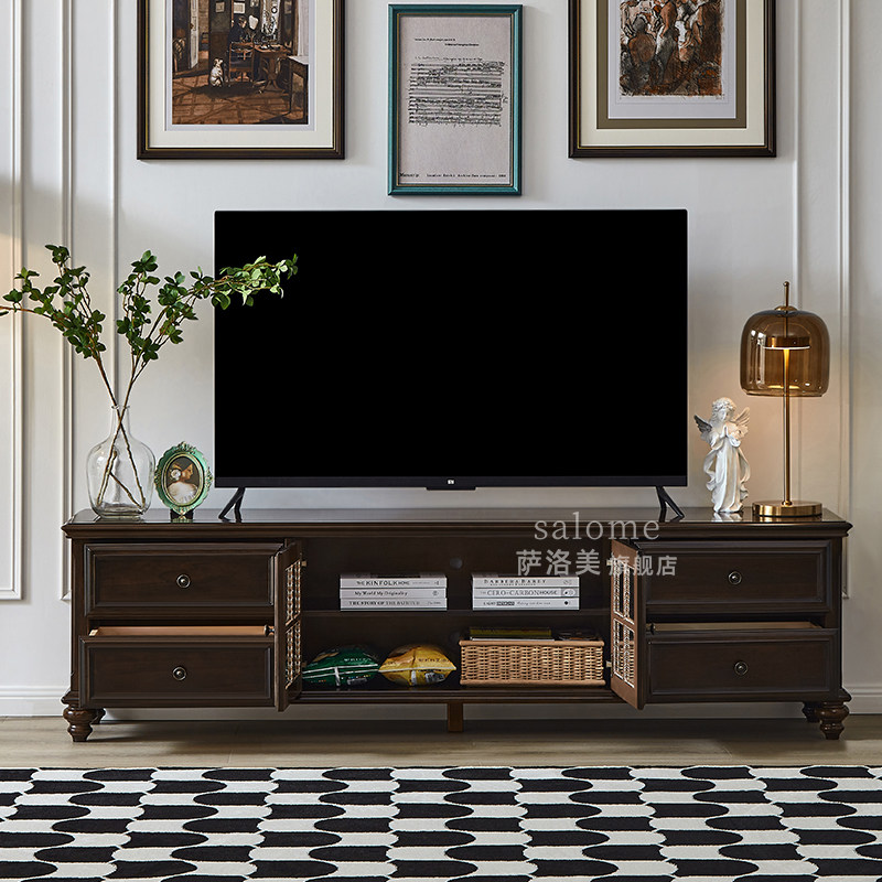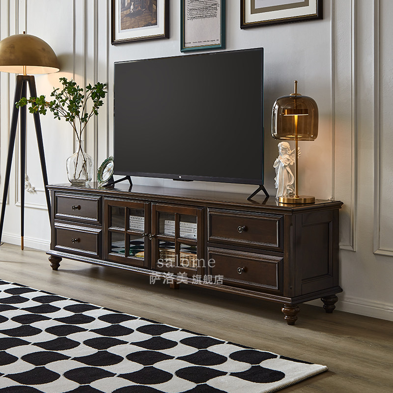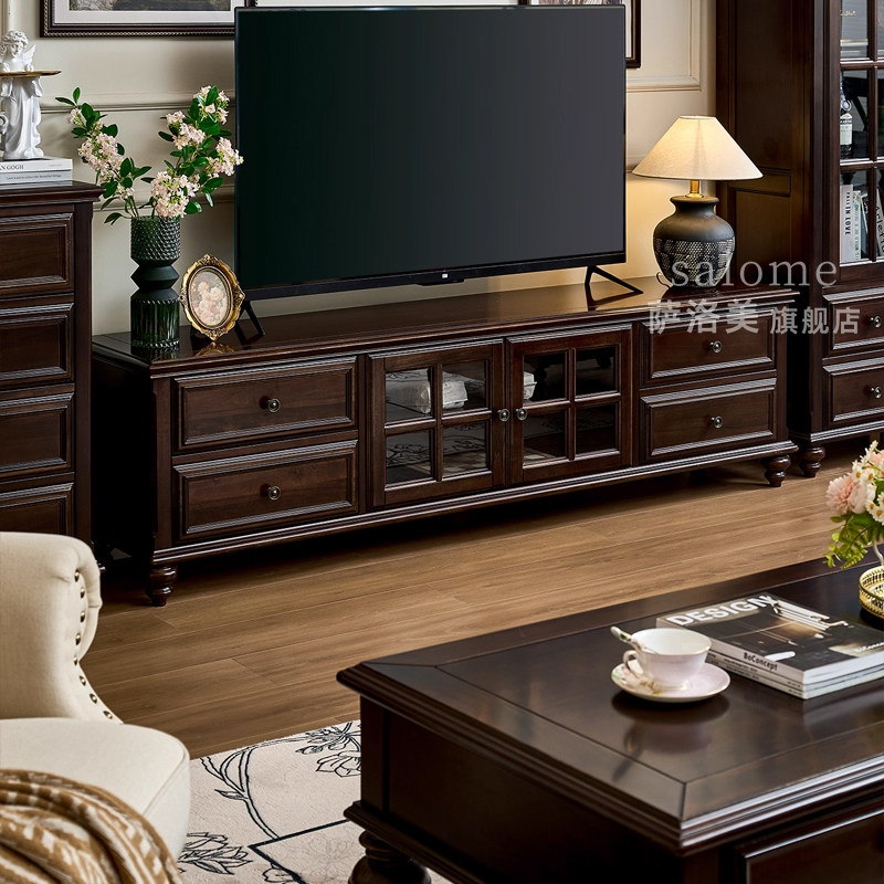 美式纯全实木电视柜茶几组合欧式中古风法式复古轻奢原木客厅家具