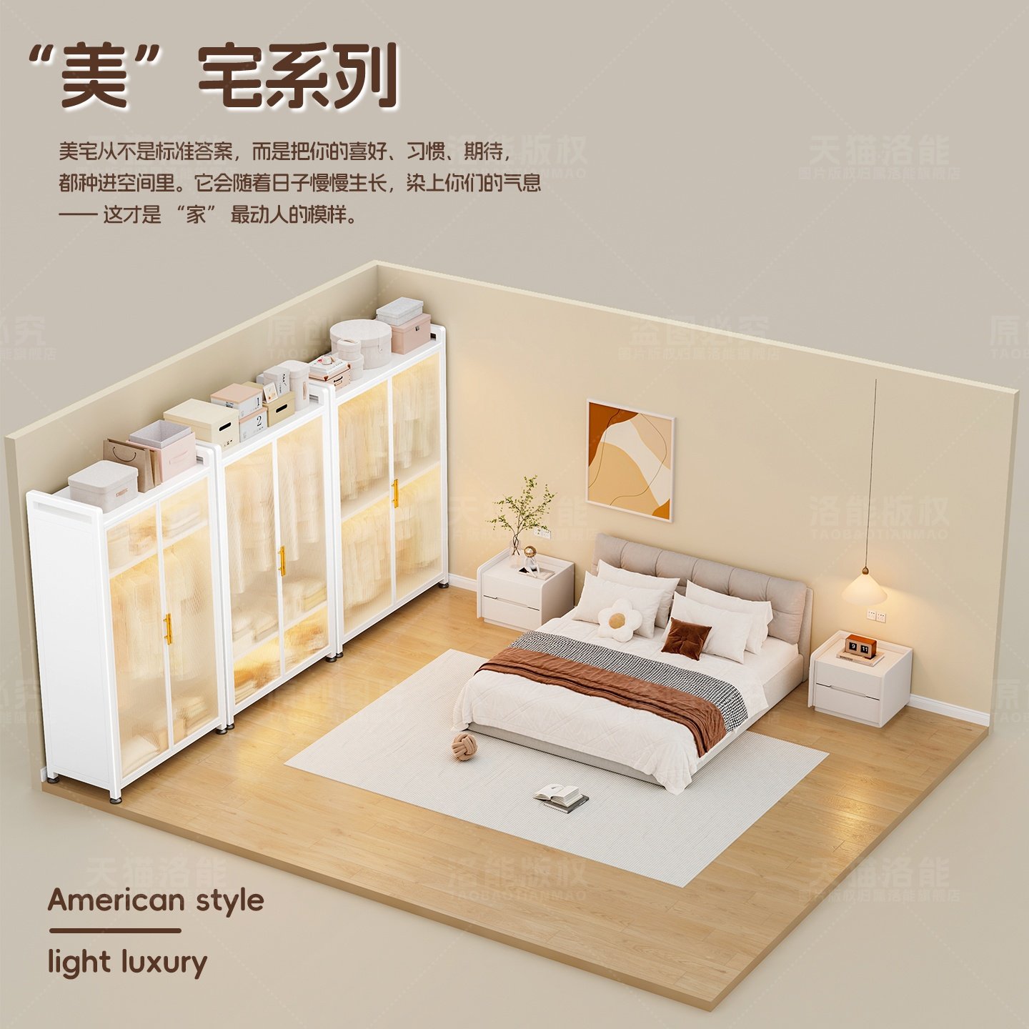 钢制衣柜家用卧室儿童房金属落地式收纳柜宝宝衣物整理柜简易衣橱