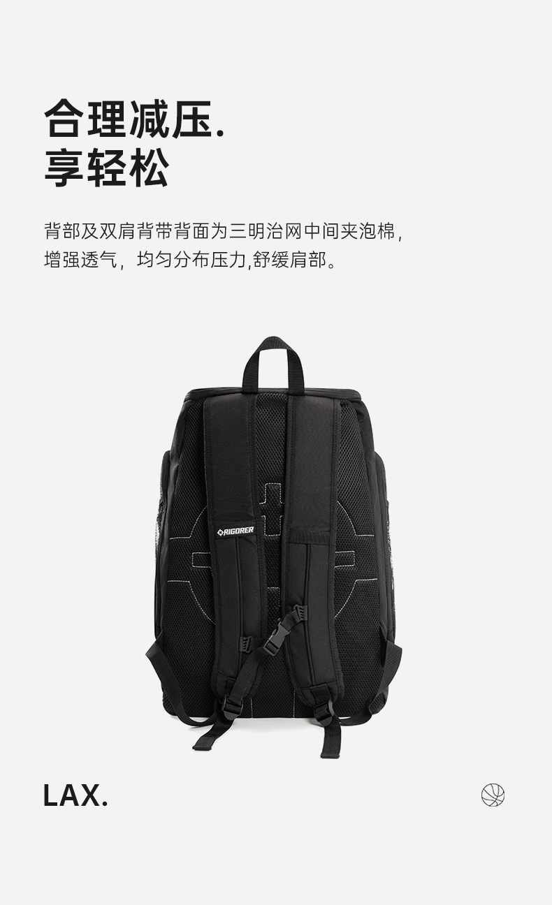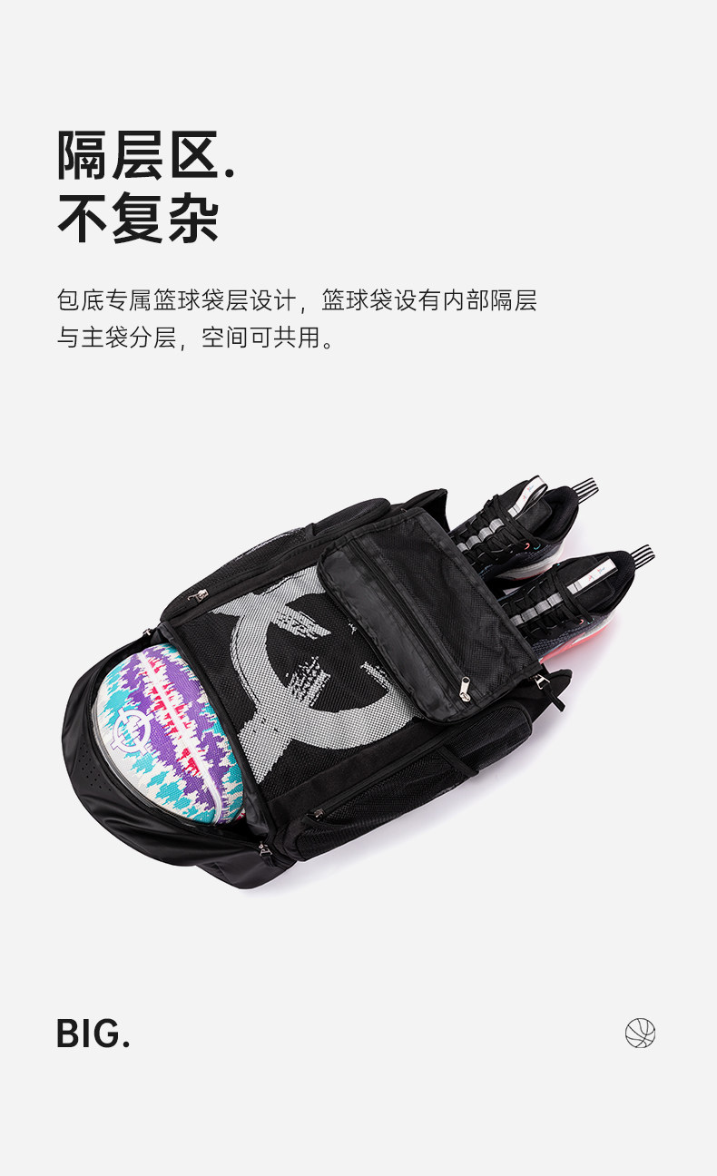 推荐理由:准者夜光LOGO篮球双肩包减压透气分区大容量多功能训练运动健身包