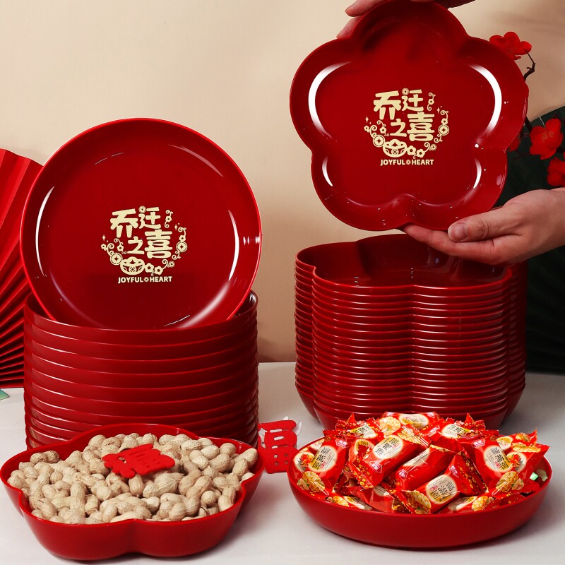 乔迁之喜果盘新居搬家入宅用品客厅装饰布置乔迁零食水果盘子红色